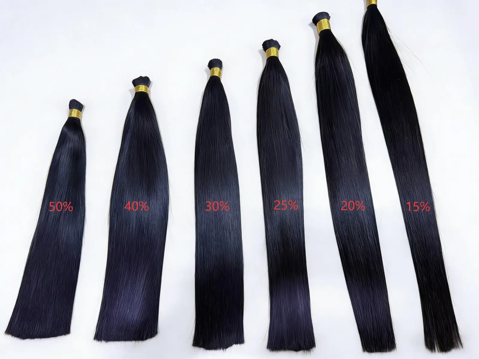 Simply put, hair extension ratios refer to the percentage of hair strands that reach the full advertised length in a bundle.